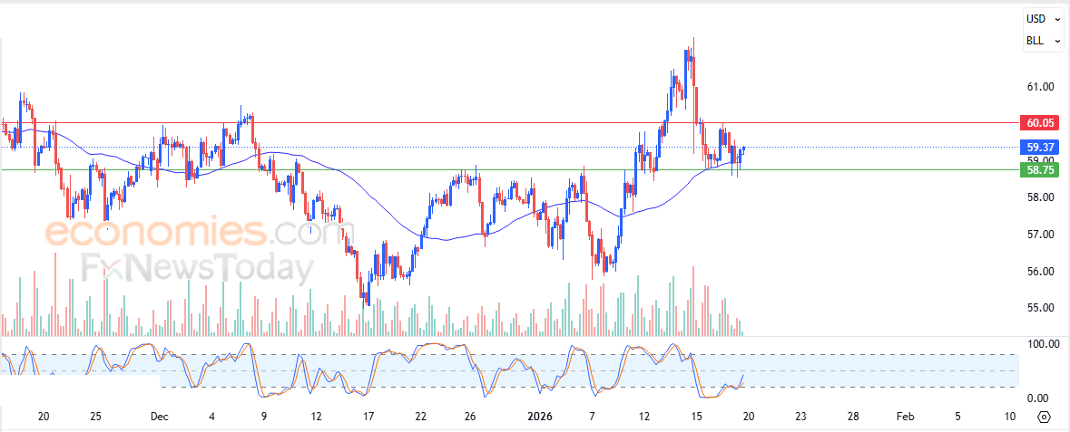 Die (ru-olie) prys het in sy laaste verhandeling op intradagvlakke gestyg, as gevolg van die steun op EMA50 se ondersteuning, en het bullish momentum verkry wat dit gehelp het om hierdie winste te behaal, benewens die opkoms van positiewe seine op die relatiewe sterkte-aanwysers, nadat dit oorverkoopte vlakke bereik het, te midde van die oorheersing van die bullish tendens op 'n korttermyn basis.
