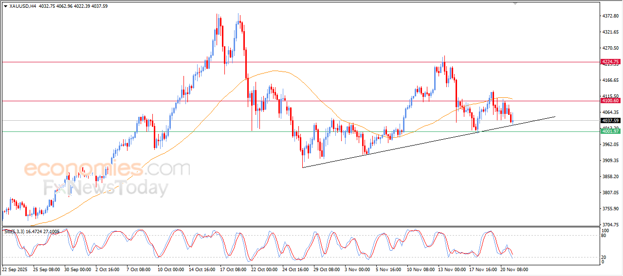 Die prys van (goud) het in sy laaste intradag-verhandeling gewissel, as gevolg van sy leun op die ondersteuningslyn van 'n geringe bullish tendenslyn op die korttermynbasis, en het van die bullish momentum verkry wat dit gehelp het om effens te styg, te midde van die negatiewe druk wat voortspruit uit sy verhandeling onder EMA50, benewens die opkoms van die negatiewe seine op die relatiewe sterkte-aanwysers.