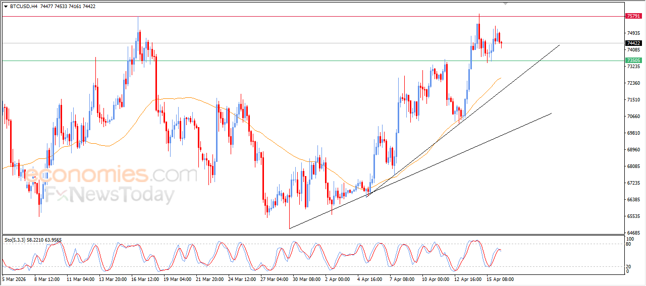 Bitcoin (BTCUSD) se prys het in sy onlangse intradag-verhandeling gedaal, met vroeë tekens van 'n negatiewe kruising wat op die relatiewe sterkte-aanwysers verskyn. Die prys probeer positiewe momentum kry wat dit kan help om te herstel en weer hoër te beweeg, ondersteun deur voortgesette dinamiese druk van verhandeling bo die EMA50, wat die stabiliteit en oorheersing van die hoof korttermyn-bullish-tendens versterk. Prysbewegings is ook in lyn met primêre en sekondêre opwaartse tendenslyne wat hierdie trajek ondersteun.