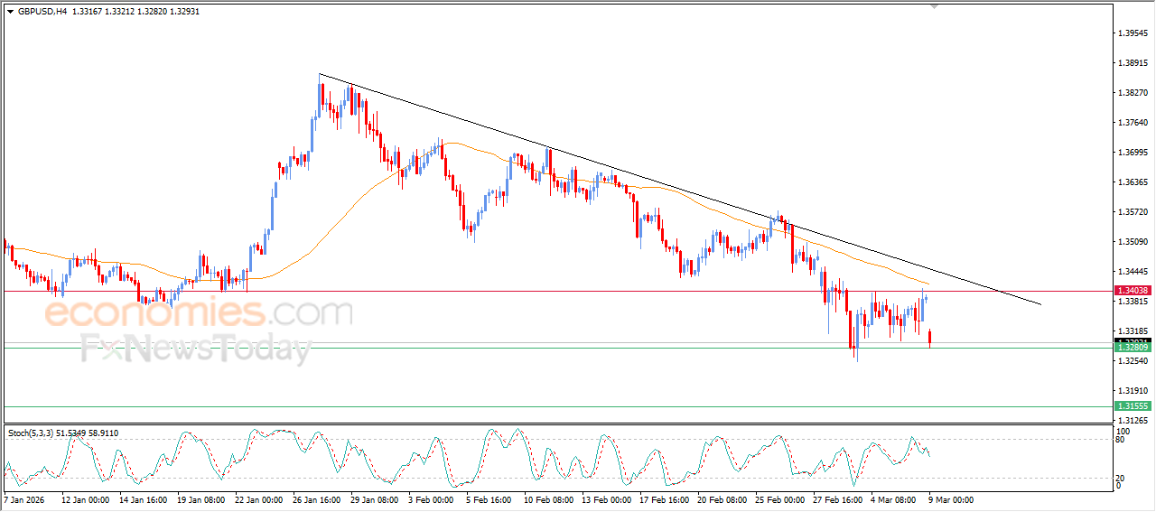 Die GBPUSD-paar het laer gedaal tydens sy jongste intradag-verhandeling en die ondersteuningsvlak van 1.3280 bereik. Hierdie ondersteuningsvlak was 'n prysteiken in ons vorige analise ter voorbereiding vir 'n potensiële deurbraak, te midde van voortgesette negatiewe druk namate die paar onder EMA50 verhandel. Dit versterk die stabiliteit en oorheersing van die hoof korttermyn-bearish tendens, veral namate prysbewegings voortduur langs 'n tendenslyn wat hierdie pad ondersteun.