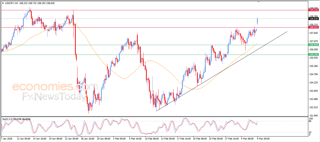Die (USDJPY) het sterk gestyg in sy laaste intradag-verhandeling, om die huidige weerstand van 158.00 te verbreek, te midde van die oorheersing van die bullish tendens op korttermyn basis met sy verhandeling langs die ondersteunende tendenslyn vir hierdie pad, ondersteun deur sy voortgesette verhandeling bo EMA50, wat dinamiese ondersteuning verteenwoordig wat hernieude bullish momentum bied, veral met die opkoms van positiewe seine van relatiewe sterkte-aanwysers, nadat sy oorgekoopte toestande verlig is, wat die weg baan vir die bereiking van meer winste in die komende tydperk.