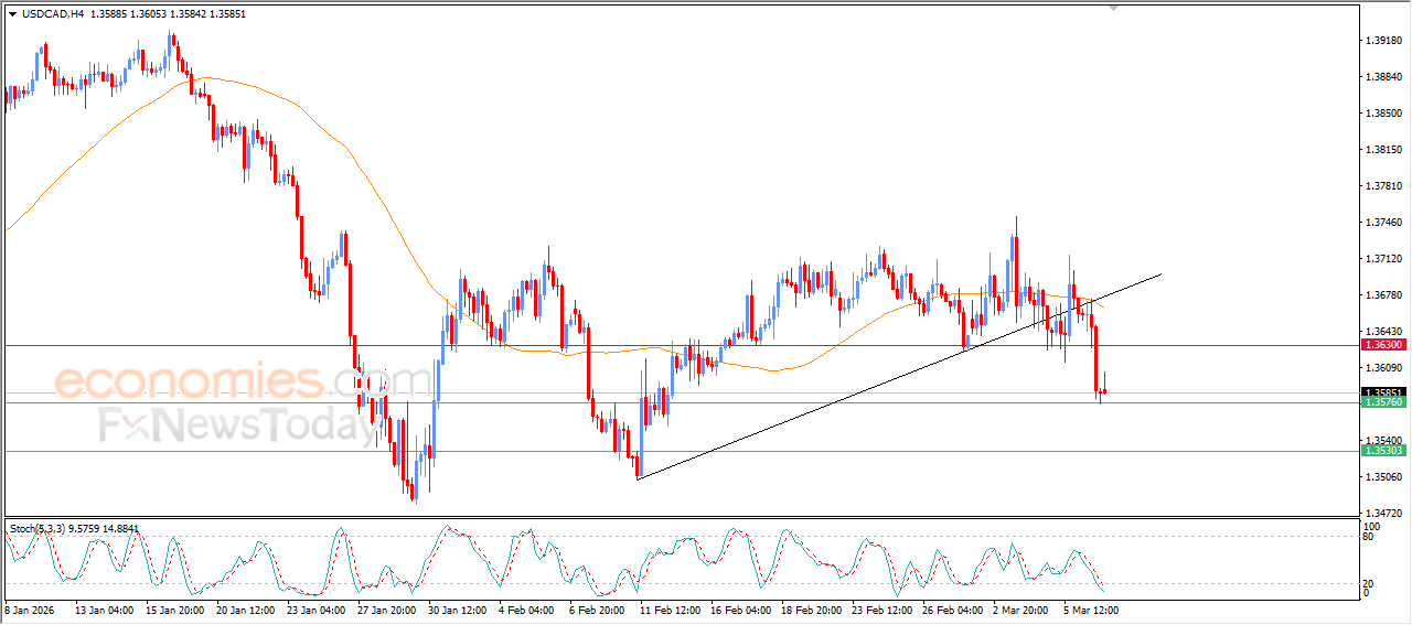 Die (USDCAD) prys het met skerp verliese in sy laaste intradag-verhandeling gevestig, en leun op 1.3575 ondersteuningsvlak, te midde van die opkoms van negatiewe seine van relatiewe sterkte-aanwysers, ten spyte daarvan dat dit oorverkoopte vlakke bereik het, beïnvloed deur die oortreding van die bullish korrektiewe tendenslyn op korttermyn, te midde van die voortsetting van die negatiewe druk as gevolg van sy verhandeling onder EMA50, wat die kanse op volle herstel op korttermyn verminder.